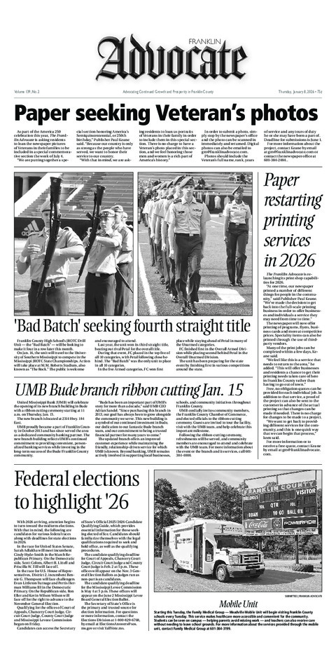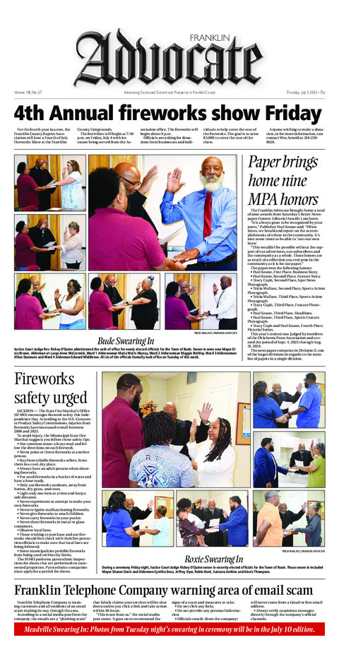 The staff of The Franklin Advocate wishes everyone a Safe and Happy New Year. Please don't drink...