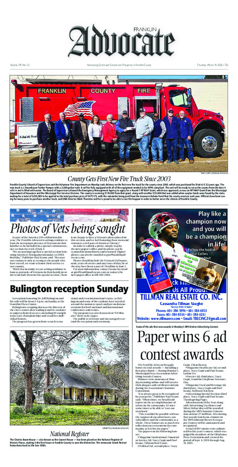Tracy Cupit | Franklin AdvocateFranklin County's Board of Supervisors and the Volunteer Fire...